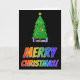 "MERRY CHRISTMAS!" in Rainbow Text + Tree, Gifts Holiday Card