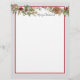 Stationery for holiday letter writing to friends and family decorated with a border of holiday botanicals with holly berries and leaves and pinecones hand drawn in sepia ink hand painted with watercolor to coordinate with the design theme accented with a thin red pinstripe and platinum grey outer border.