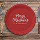 Merry Christmas Minimalist Simple Red Calligraphy Paper Plates