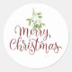 Merry Christmas Mistletoe Elegant Script Classic Round Sticker