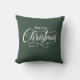 Modern Merry Christmas script throw pillow. The design features the text "Merry Christmas" in white brushed script with white holly berries and swirl accent elements. The emerald green background can be customized. Makes for the best personalized gift for yourself, your friends, family members and even neighbours. We have 35+ more Christmas pillows in our collection that you will definitely love. Please check it out and get the best Christmas gift with special wishes for your special people. Merry Christmas!