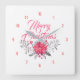 Merry Christmas Modern Typography Flowers Bouquet Square Wall Clock