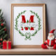Merry Christmas Monogram Wreath Wall Art