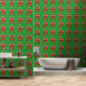 This awesome patterned wallpaper features a funny cartoon of a Christmas mouse with big round eyes, pink ears, a small pink nose and cute little twitchy whiskers. The mouse is wearing a red and white Santa hat ready for Christmas.