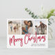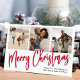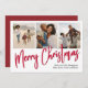 Merry Christmas Multi Photo Red Calligraphy Script Holiday Card