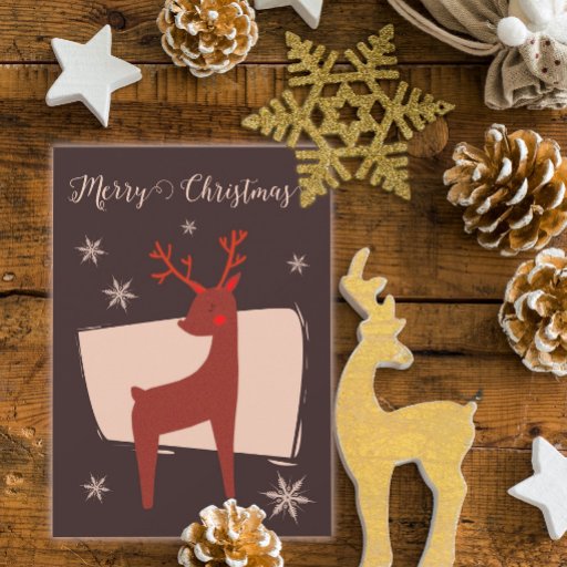 Merry Christmas pillow featuring a cute baby deer over a background with snowflakes and a stylized shape all in warm earth tone colors in trend for this Christmas.