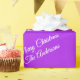 Personalize names, Merry Christmas, or message, in white script text on purple background; perfect for wrapping that special gift. Click “Edit Design” to change colors and type styles.
