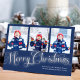Merry Christmas Navy Blue Photo Collage Script Holiday Card
