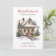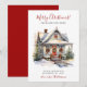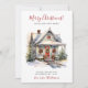 This watercolor Merry Christmas new home for the holidays announcement card with a festively decorated house with snow, pine boughs, a wreath, red bows and trees would be perfect to send to your friends and family now that you have moved to a new home. The sentiment is customizable. Get enough so that everyone you know and love has your new address. They'll be so excited about your big move!