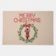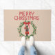 Merry Christmas Nutcracker Wreath Beige Door Mat