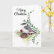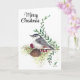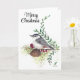 Merry Christmas with painted watercolor nuthatch bird. Art by Jenn Steffen, Jenn Steffen Art.