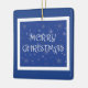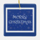Merry Christmas on Blue with Snowflakes Ceramic Ornament