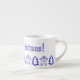 Merry Christmas! or your Name or Text Cute Gingerbread Man and Christmas Tree Pattern Blue and White Espresso Mug Unique Personalized Christmas Gift for Coffee Lovers.