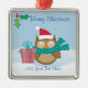 Merry Christmas Woodland Creatures is a series of six ceramic ornaments that feature a snowman and five woodland animals, with Christmas gifts. The background on each ornament is the same. The text at the top reads "Merry Christmas". You can customize this with your own text and there's also an area on the bottom for you to add additional text. These ornaments are sold separately.