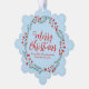 Merry Christmas pale blue red script rustic wreath Ornament Card