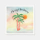 These island style paper napkins feature hand drawn palm trees decorated with lights on a watercolor background.