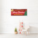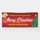 Merry Christmas banner on glowing red background with tree and bells. Edit all text. Great for a Christmas parade or a store display.