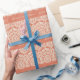 Merry Christmas Peach Damask Pattern Customisable Wrapping Paper