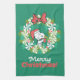 Merry Christmas Peppermint Holiday Wreath Kitchen Towel