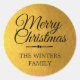 A modern gold Merry Christmas sticker or envelope seal you can personalize with your family name or names. The text "Merry Christmas" in black is set in modern script. Perfect Christmas envelope seal with modern pattern, sparkle, luxury and glam.