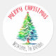 Merry Christmas Personalized Watercolor Classic Round Sticker