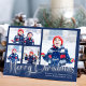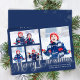 Merry Christmas Photo Collage Navy Blue Script Holiday Card