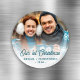 Celebrate your first Christmas together with this personalized keepsake magnet. The turquoise text reads "Our 1st Christmas" in stylish retro handwriting script. Replace the sample image with your favorite photo, and add your names and the year. A white gradient filter helps make the text pop.