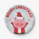 Illustration of a cute Pig dressed as Santa standing in a winter scene. Text reads: "Merry Christmas!"