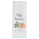 Simple and elegantholiday wine gift bag featuring a beautiful watercolor of sage green, red, gold and terracotta pine trees, "Merry Christmas" in a stylish script and your message and name in modern typography.