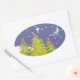 Merry Christmas Pines Moon and Stars Oval Sticker