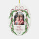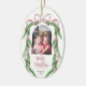 Merry Christmas Pink Bow Ribbon Pine Arch Photo Ceramic Ornament