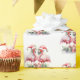 This cute holiday gift wrap features cute flamingos in Santa hats with gifts in soft watercolor shades of pink, red and green.