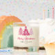 Modern pink Christmas tree scented candle with Merry Christmas text and family name or choice of text. Matching items available. Artwork from artists own illustrations. Please contact me for customization and special requests. © Zoe Chapman Design