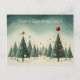 Merry Christmas postcard with Christmas trees, minimalist, ornaments and winter background whimsical art. Personalize it using 'Personalize this template' or using the Edit feature.