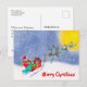 This Santa Claus theme Merry Christmas postcard featuring Santa Claus flying in a sleigh with reindeer. Also card has "Merry Christmas" words on the front - this text is editable.