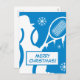Merry Christmas postcards with cute tennis snowman design. Great for tennis player, coach, instructor, teacher, captain, kids etc. Fun Holiday post cards with custom greeting or message for friends and family. Funny print with tennis balls made of snow. Also handy for change of address, new house, relocation, moving, business, shop, store, company, office, kid's party in the winter etc. Blue and white color combination.