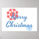 Merry Christmas. Blue text and two snowflakes of pink and blue colors. Christmas mood. Merry Christmas and Happy New Year! Just for Christmas gifts and for fun.