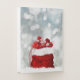 Christmas presents in the red bag on shiny bokeh background with text...Merry Christmas.