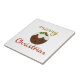 'Merry Christmas' in faux gold color and red script with illustration of a Christmas pudding with holly center.