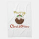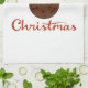 'Merry Christmas' in faux gold color and red script with illustration of a Christmas pudding with holly center.