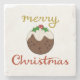 'Merry Christmas' in faux gold color and red script with illustration of a Christmas pudding with holly center.