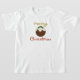'Merry Christmas' in faux gold color and red script with illustration of a Christmas pudding with holly center.