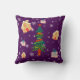 This holiday photo throw pillow features a classic message with a fun Christmas tree shape, gingerbread house and present on a beautiful dark purple background, radiant and full of energy. With a photo on the front surrounded by snowflakes (removable), it's a great way to send Christmas cheer to friends and family. The back is a also dark purple dotted with snowflakes (removable), tree, gingerbread house and presents.