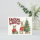 A Colorful Merry Christmas Holiday Greeting Postcard Design With Rabbits Decorating The Tree And Wrapping Gifts