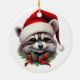 Merry Christmas Raccoon in Santa Hat Holly Berries Ceramic Ornament