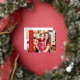 Merry Christmas red 2 photos family gold Foil Holiday Postcard