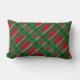 Merry Christmas Red and Green Plaid Lumbar Pillow