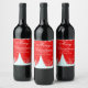 Personalized Christmas wine label design featuring a red and white winter landscape. The text is fully customizable.