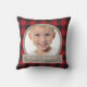Rustic red and black checkered buffalo plaid and brown burlap "Merry Christmas" photo pillow. Personalize with your photo, message (Merry Christmas, Happy Holidays...) and the year.