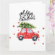 Merry Christmas red car with Christmas tree Card